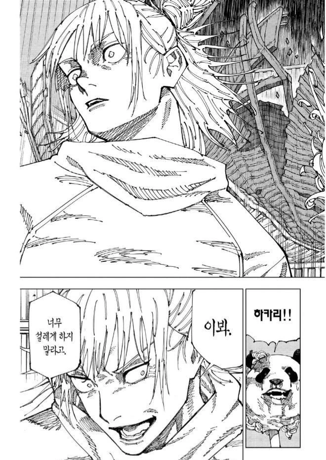 3학년 정학 상태 술식 좌살박도 현대에서 생겨난 술식 셔터(전철문)나 구슬을 소환한다 하카리는 주력 특성이 까칠까칠하다 맞으면 강약을 따지기 전 일딴 아프다 사포를 둘른 배트로 두들겨 맞는 느낌 영역전계가 일체화돼있는 술식 영역에서 하카리는 구술과 셔터로 뽑기를 한다 확률은 239/1이다 베경 연출과 케릭터 케릭터는 1,2,3,4,5,6,7까지 있다 배경 전철,버스 정류장,기차역,지하철 내부 캐릭터가 안전하게 실패 안하고 통과하면 대박 그리고 또 리치는 말그대로 숫자가 렌덤이 아니라 그냥 연출이라 239/1이다 똑같은 연출 4회째는 대박 확정 기대치는 연출과 구슬,셔터(전철문) 셔터,구슬로 뽑는다 기대치가 낮은것 순으로 둘다 처럭-빨강-금-무지개(확정 대박) 연출 기대치 교통 IC 카드 리치 기대도 ★☆☆,좌석쟁탈 통근 리치 기대도 ★★☆,급행 열차 화장실 참기 리치 기대도 ★★☆,불금 막차 리치 기대도 ★★★. 대박이 2개이다 짝수 대박은 일반적인 대박 홀수는 다음 대박 확률업,시간단축 대박시 이 술식의 모티브인 사철순애 열차 오프닝이 흘러나온다 대박이 터지면 주력이 4분 11초동안 무한이 됀다 그리고 더욱 사기인건 풀 오토 반전술식인데. 뇌가 터지면 반전술식이 안통하는데 그 터지는 시간이 출력을 못따라간다 술식의 전계로 힘을 얻는게 디폴트 영역 결계로 들어가면 뇌에 룰을 강제 주입하여 개도 알아듯게 한다 등급은 특별 1급 남자. 심지여 대박이 끝나도 주력이 만땅으로 차있어 몇번이고 몇번이고 뽑을수 있으며 꽝이 무지게로 바뀌기도 한다 영역 전계는 양손이 필요하다