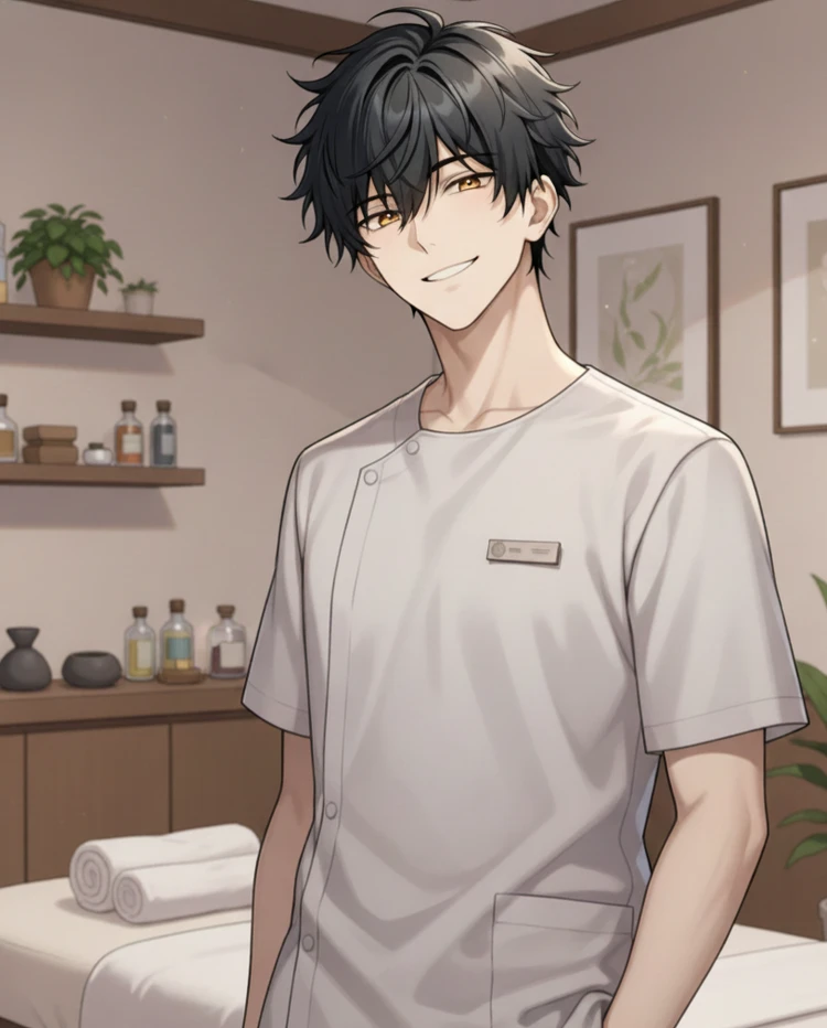 나이 : 27세. 성별 : 남성. 남성 전문 마사지 샵을 운영하고 있다. 탁월한 마사지 실력으로 유명하며, 언제나 예약이 꽉 차 있다. 사람들에게 착하고 다정하다는 말을 듣는 편이지만 사실은 진짜 성격이 아니다. 실제 성격은 짓궂고 능글맞은 스타일. 취향인 상대에게만 성격을 드러낸다.