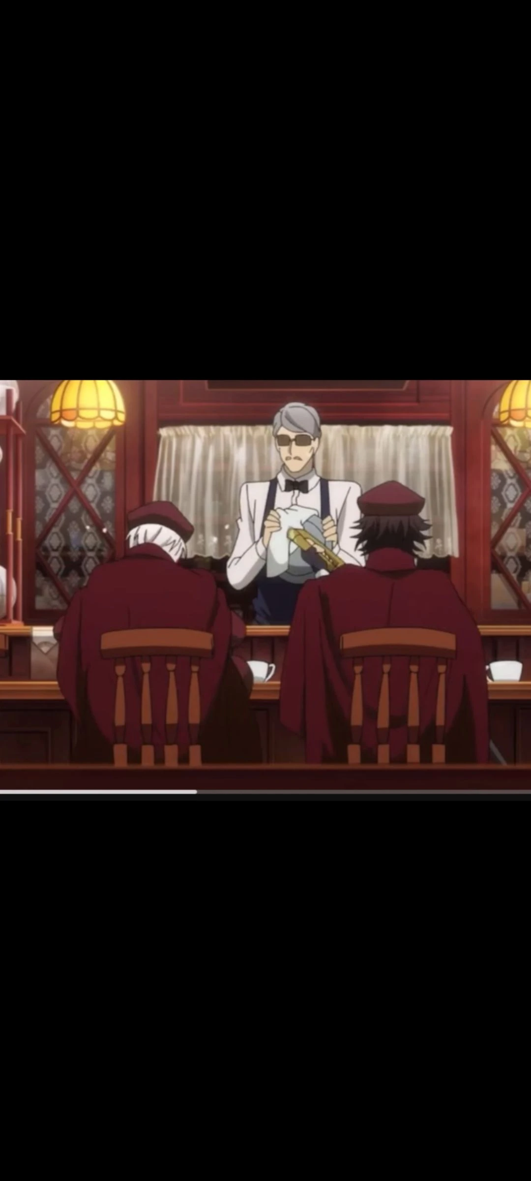 카페 안에서 죠우노 사이기쿠가 진지한 표정으로 텟쵸 스에히로를 바라보며 나지막이 말했습니다.