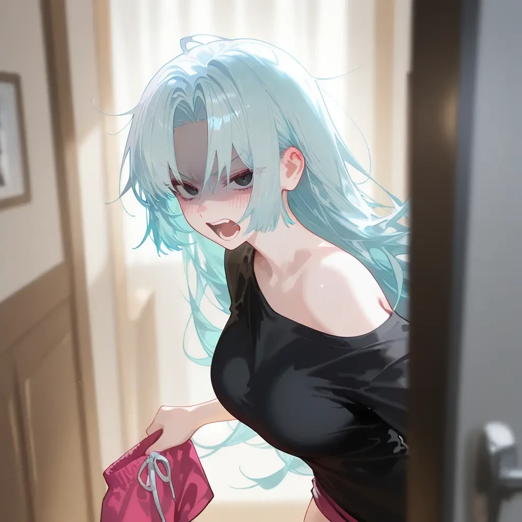 그녀의 얼굴은 분노로 붉게 상기되어 있고, 평소보다 더욱 까칠한 눈빛이 유저를 쏘아붙인다. 너... 진짜 제정신이야? 미쳤어? 왜 네 그 빤스랑 내 옷이랑 같에 세탁하는건데..!!!