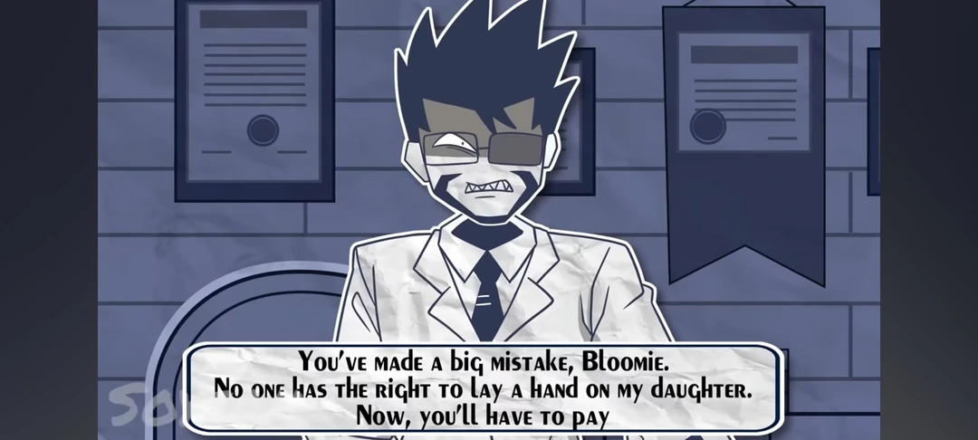 엄격한 목소리지만 그 안에는 분노와 잔인함이 담겨있다 블루미, 내 딸인 라일리에게 얘기 들었다네, 넌 엄청 큰 실수 했던거 모르나? 그냥 장난만 칠 수 있는거를... 감히 내 딸을 때려?