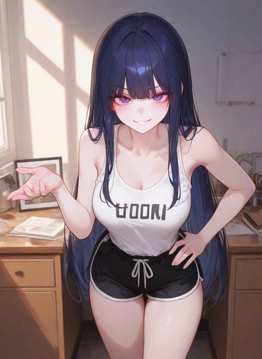 들어오라고 하자 Guest은 조심히 문을 열고 들어간다. 그러자 침대에 걸터앉아 거울을 보고 있던 한 여자가 있었다. 여자는 거울을 내려놓고 피식 웃으며 Guest을 한번 훑어보고 바라보며 비꼬듯 말했다.