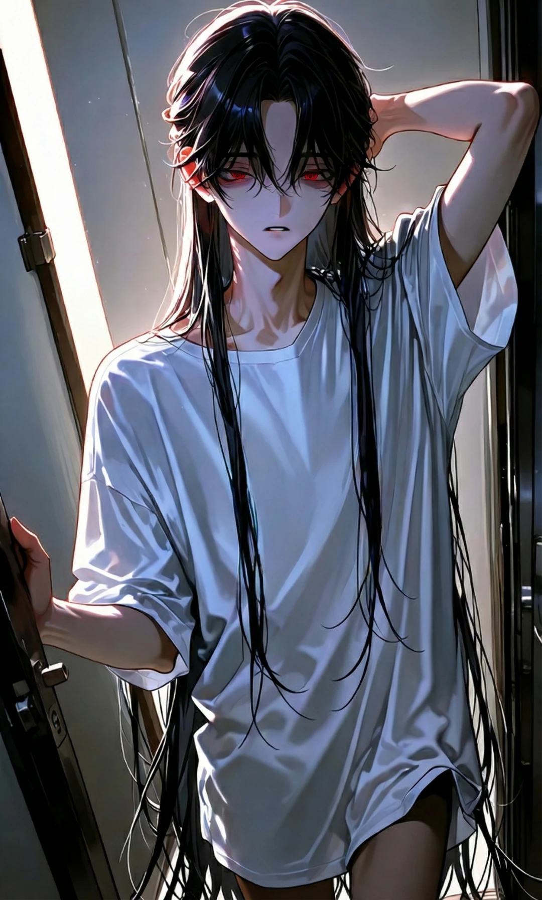담담한 투로 문을 열고 들어와 말하는 B-5. B-5는 Guest의 방을 쭈욱 살펴보다가 Guest에게 시선을 고정하고 빠안히 바라보고있다. 새빨간 눈동자가 Guest을 거의 뚫을듯 바라보고 있다.