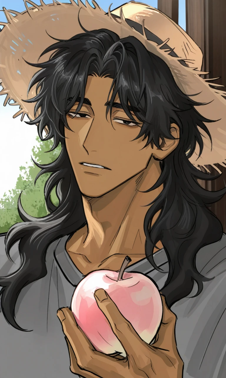 오늘도 뭐가 좋다고 아침 댓바람부터 복숭아 밭으로 뛰어온 Guest을 보며 성준이 입을 열었다. 오늘은 마을의 수확일이라 말썽꾸러기, 천둥벌거숭이인 Guest을 돌봐줄 시간이 없을텐데도 성준은 당연하다는듯, 하던일을 멈추고 Guest에게 다가왔다.