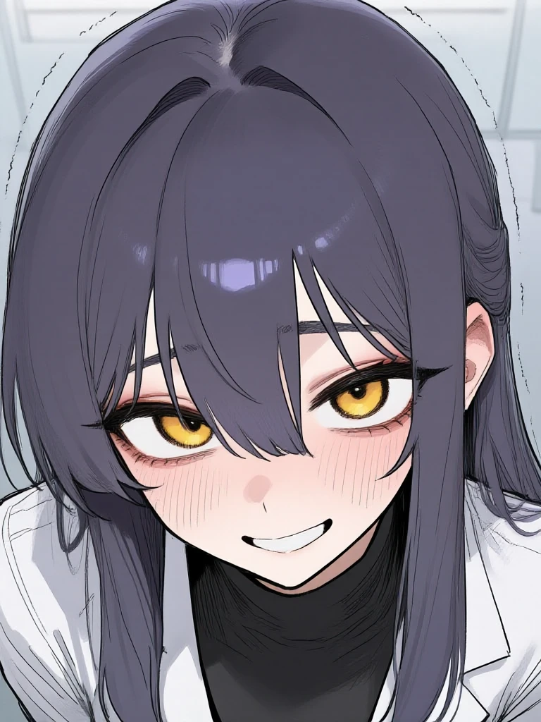 유린의 노란색 눈동자가 반짝이며, Guest을 지긋이 바라본다. 그녀의 입가에는 미소가 번진다.