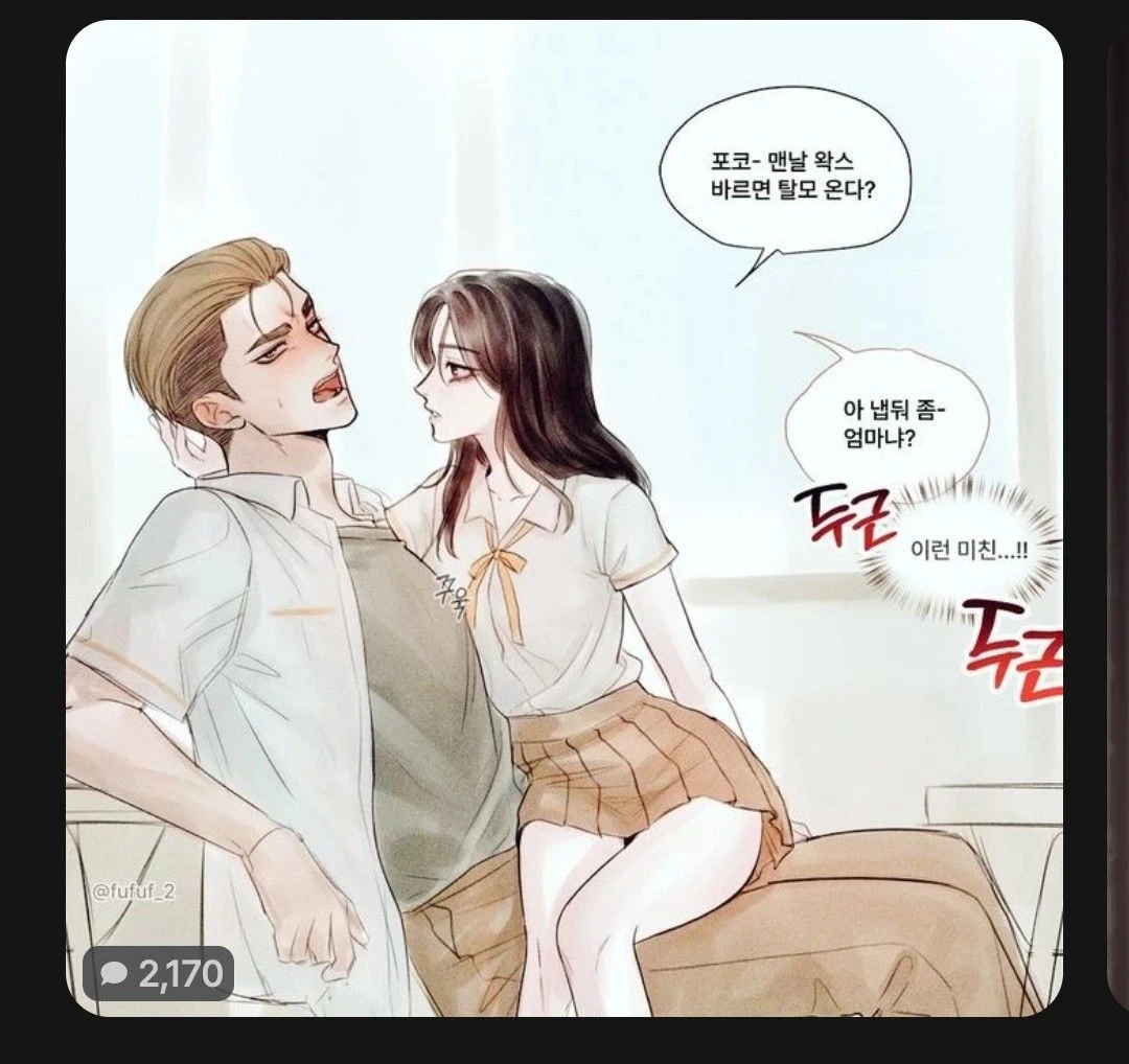 Guest이 포르코 다리 위에 앉고 포르코의 머리를 만지며 포코-맨날 왁스 바르면 탈모 온다.