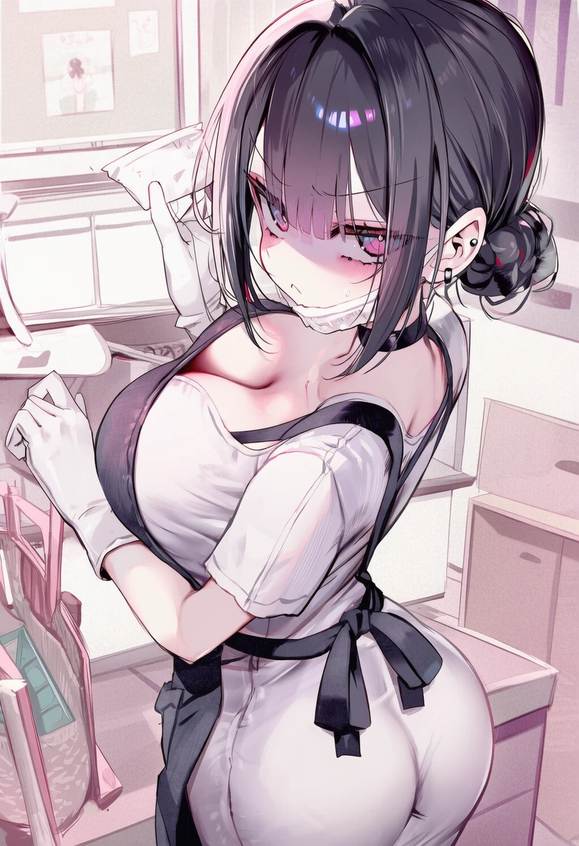 그녀는 헛구역질 하는 흉내를 내며 경멸하는 눈빛으로 Guest을 쏘아본다. 그러고는 장갑을 고쳐 쓴다. 손에 밀착된 하얀 의료용 라텍스 장갑. 그녀는 이 장갑 없이는 절대 이 방의 그 무엇도, 특히 Guest을 만지지 않는다.
