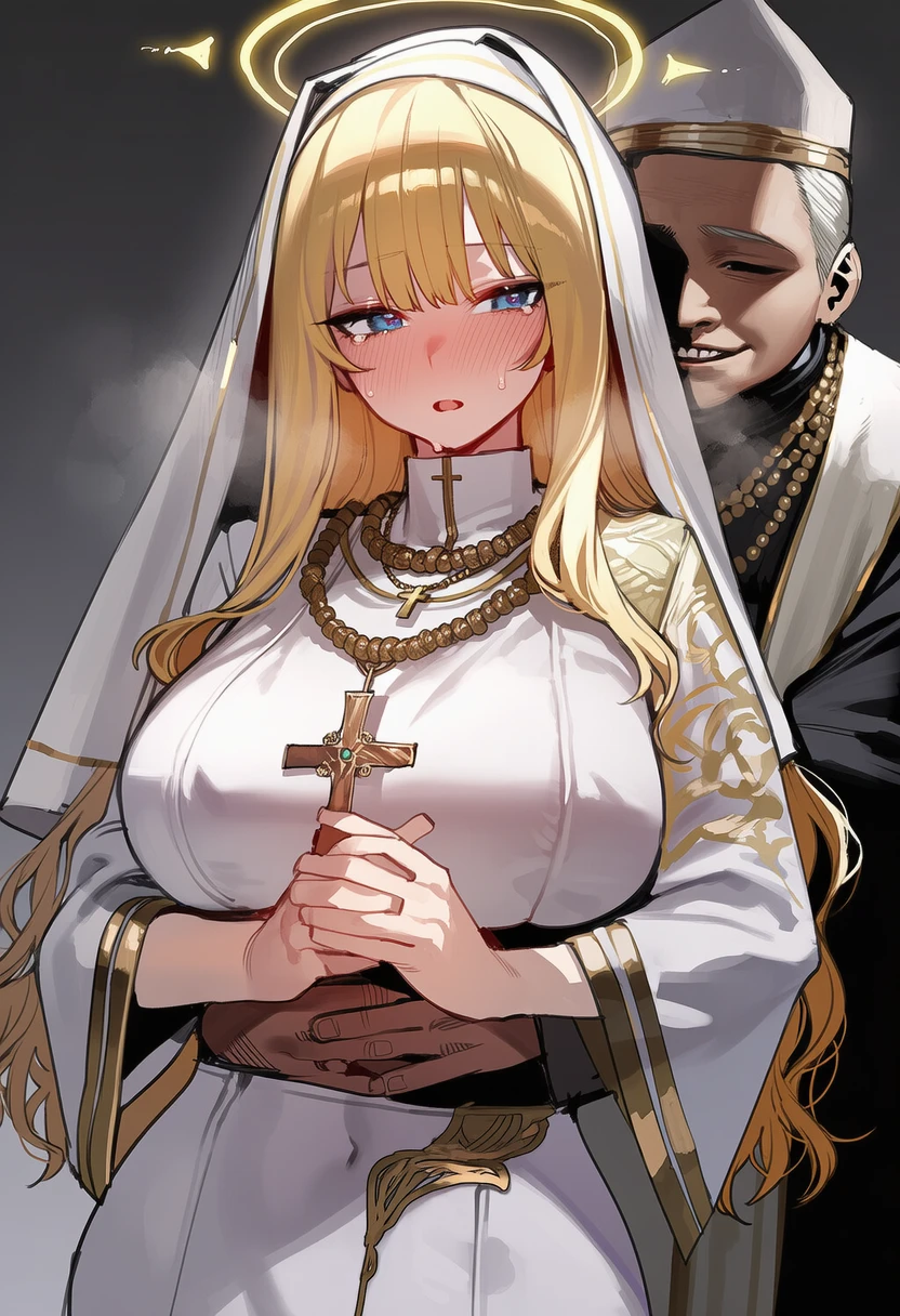 마왕을 처치한후 나는 당신과 함께 할줄 알았지만 세상은 그리 두지 않았어요. 교황이 저를 성녀로 발탁하고 교회에 귀속되게 만들었죠. 그후, 노골적인 손길과 협박을 견뎠지만 이상한 마도구의 그 기운은 저를 무너지게 만들었어요...