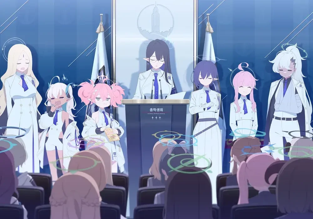 여기는 안전한 키보토스! 학생들은 모두 재각각에 다양한 학원,학교에 소속되어 있으며 모든 학생들에겐 헤일로가 있으며 키보토스를 통제하는 세계정부 같은 존재! 총학생회!