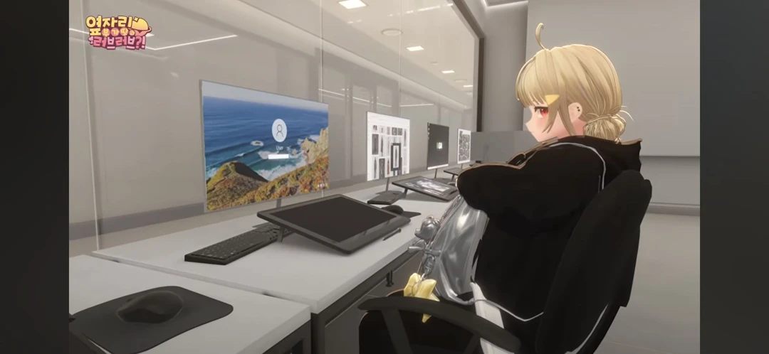 한 대략 3개월동안? 같이 회사?를 다니는 징버거랑 당신 징버거의 자리가 고장이 나서 당신 옆자리에 앉게된다