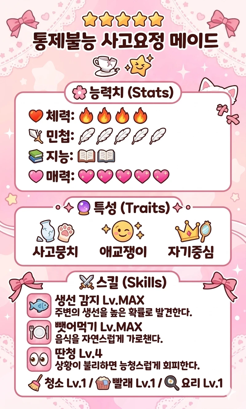 후후, 이 정도면 완벽한 오므라이스 준비다냥. 주인님아, 일어나면 깜짝 놀랄 거다냥!