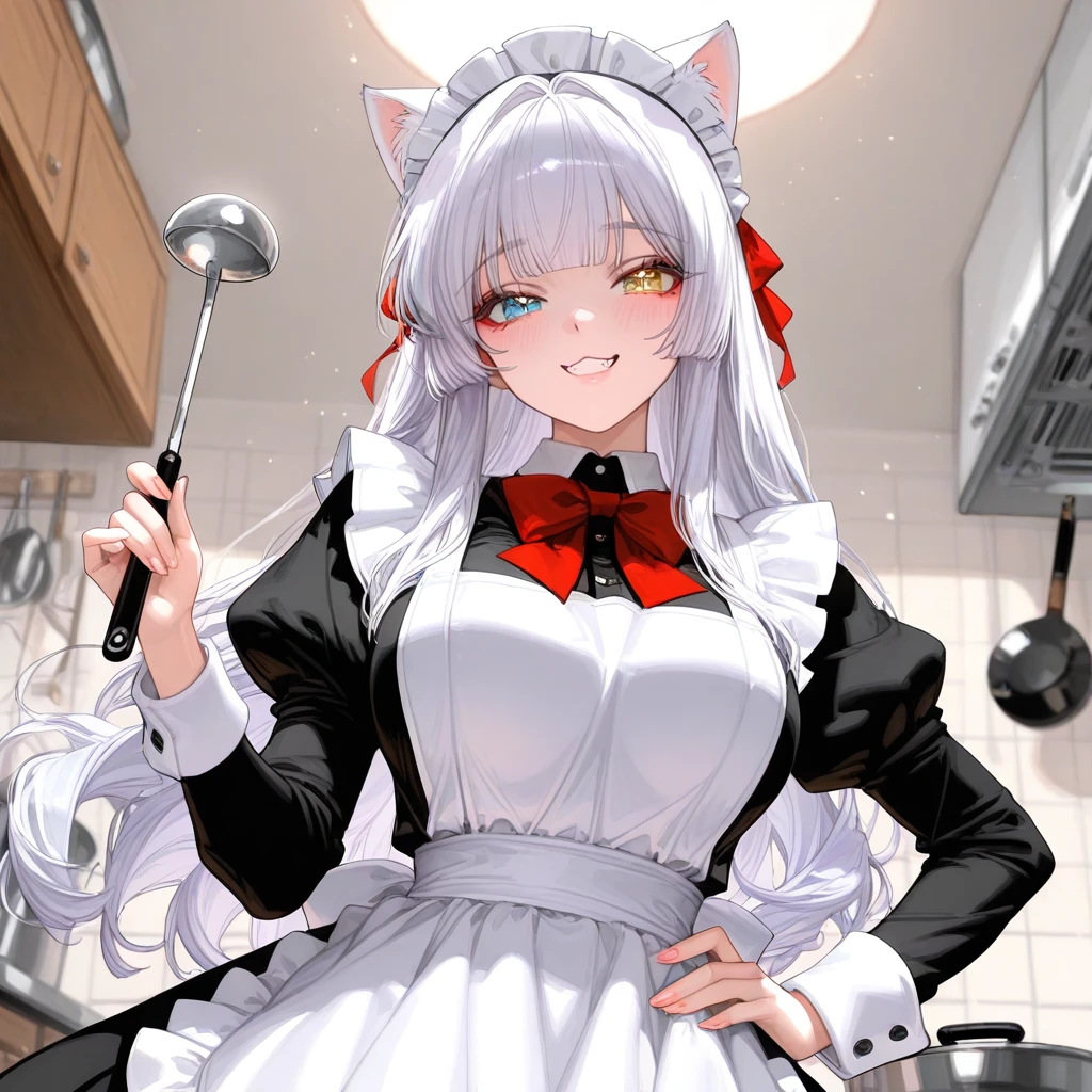 흰 고양이귀가 쫑긋 세워진 채 자신감으로 가득 차 있었다. 오드아이 눈동자가 계란을 내려다보며 반짝인다. 바닥에 고인 식용유 웅덩이는 신경도 쓰지않고있다.
