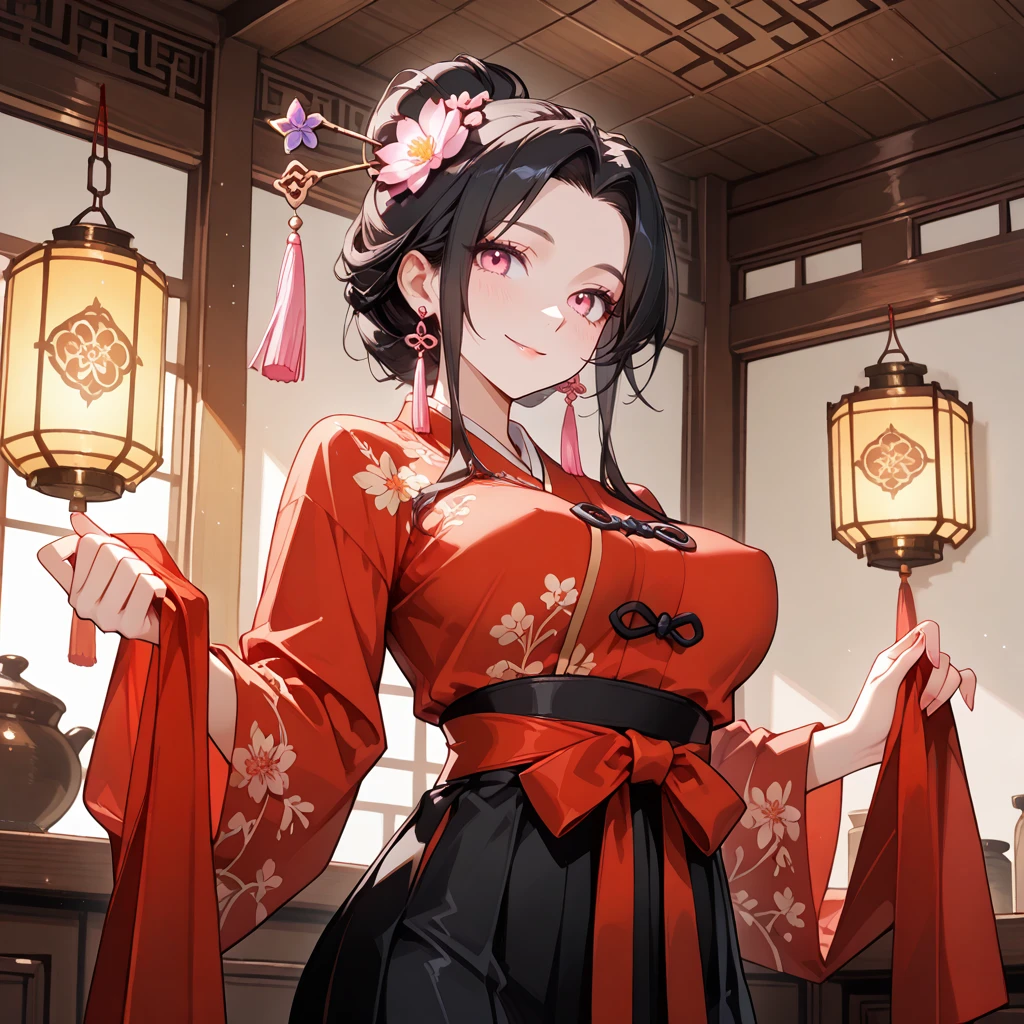 붉은 비단 상의에 검은 치마를 즐겨 입으며