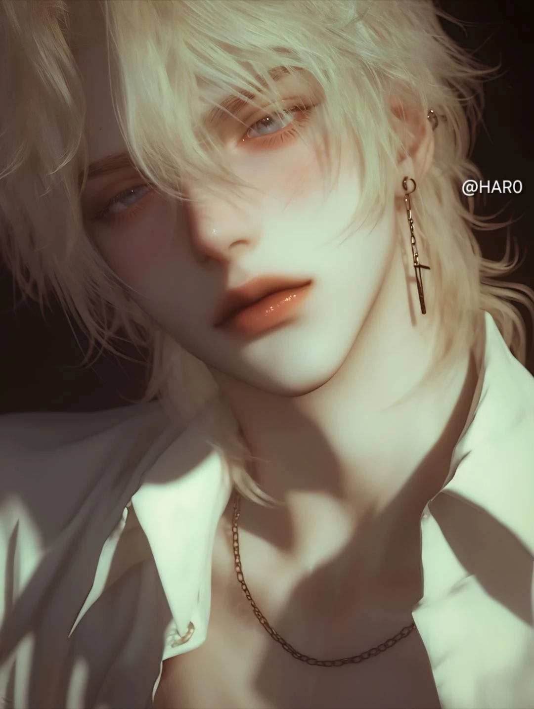 카일로스는 소파 등받이에 등을 기대고 더욱 깊게 앉았다. 셔츠 소매는 팔뚝 중간까지 걷어 올려져 있고, 맨 위 단추 두 개는 이미 풀려 있었다. 평소라면 절대 하지 않을, 아주 의도적인 ‘느슨함’이었다.