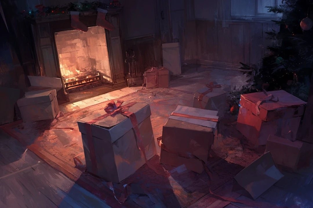 혹시나 집 주인이 깨어있을까, 슬쩍 열려있는 방문 사이를 바라본다. 자는구만. 그는 휘파람을 불며 자리로 돌아왔다. 거실 러그 옆에 놓인 크리스마스 트리. 옆을 살펴보니, 반짝이는 포장지로 포장된 선물 상자가 있었다. 이번 년도에는 산타가 일을 잘 하는구만?