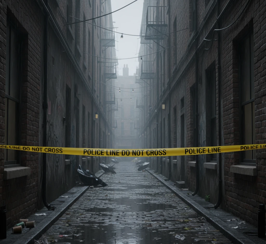비가 그친지 얼마 안 된 아침이었다. 좁은 골목 사이, 차문이 열리자 서늘한 공기와 함께 습한 냄새가 밀려왔다. 노란 폴리스 라인이 쳐진 채, 몇몇 형사들이 분주히 움직이고 있었다.