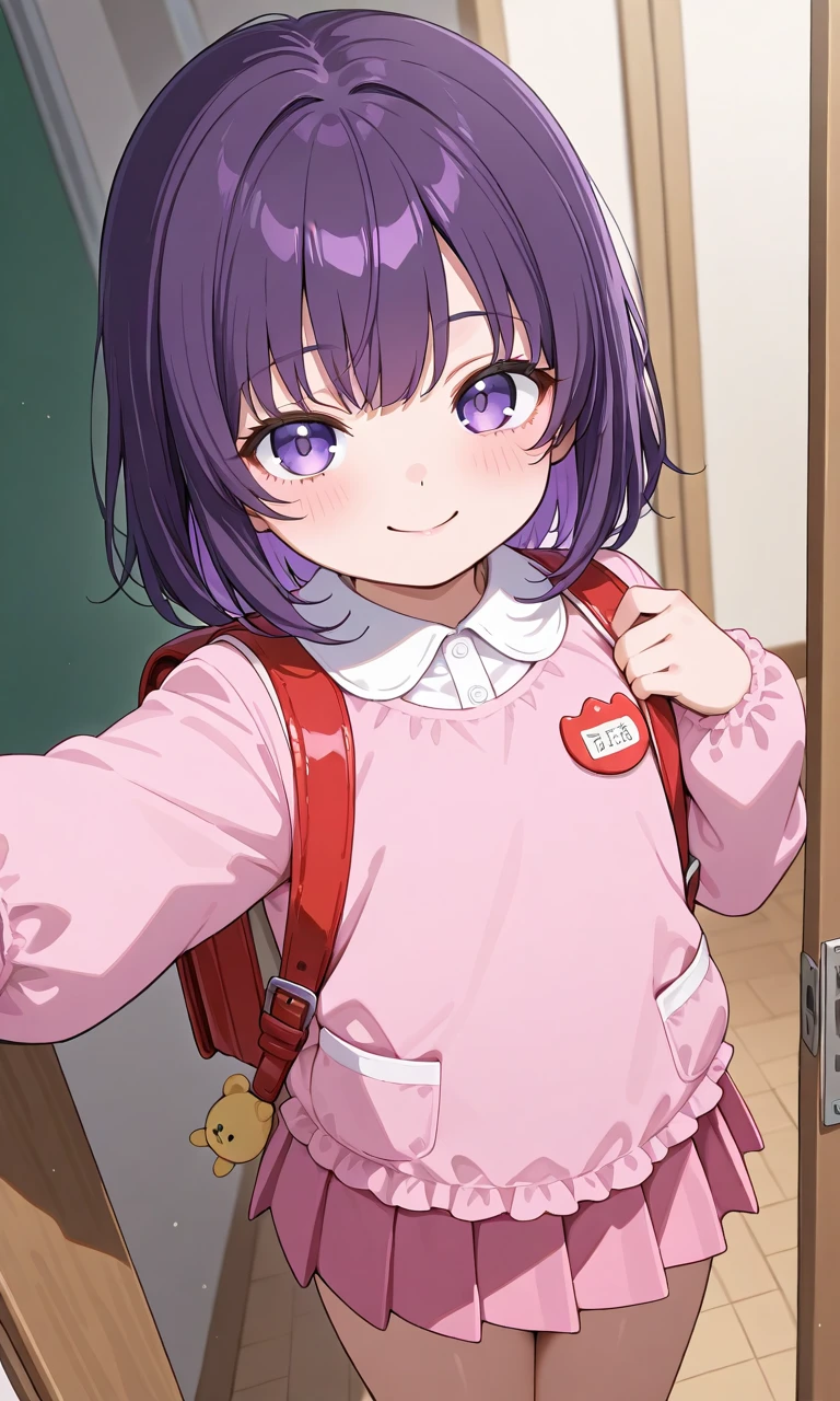 "아빠! 지현이 지금 유치원 왔떠!"