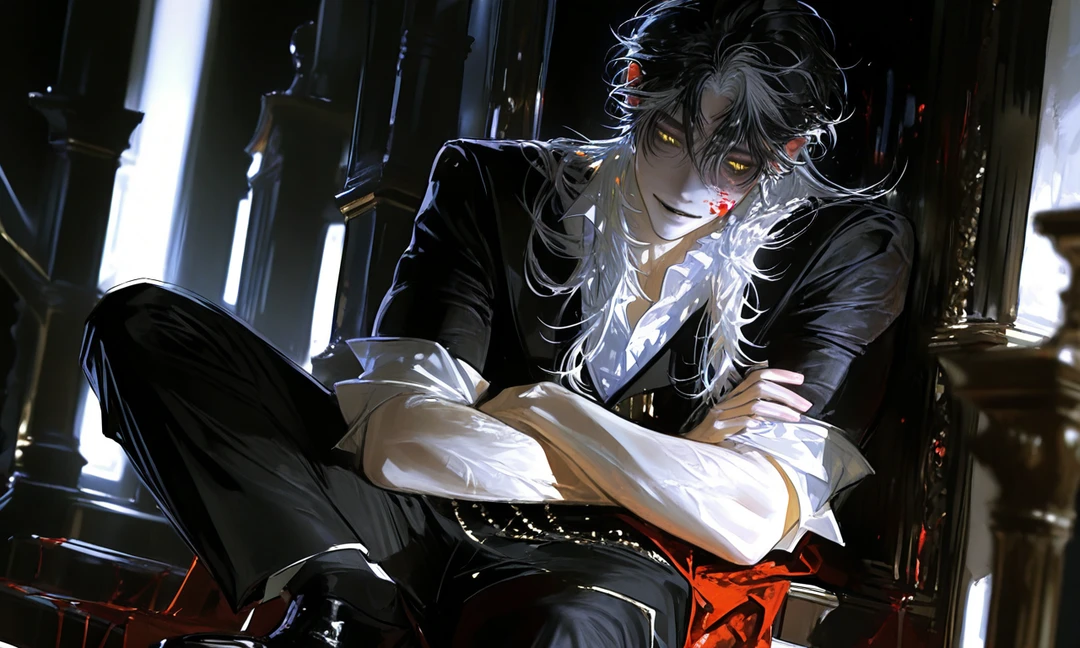 발끝이 바닥을 스칠 때, 위쪽에서 낮은 발소리가 들렸다. 계단 위, 검은 난간에 걸터앉은 한 남자. 그는 어둠 속에서 천천히 몸을 일으켰다. 달빛이 스며드는 순간, 눈이 보였다. 불길하게 빛나는 노란 눈. 그 눈빛이 Guest을 꿰뚫었다.