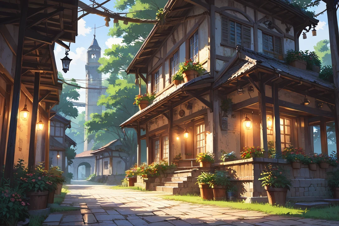 해가 기울 무렵, 오로라 왕국의 저녁 거리는 잔잔한 빛으로 물들어 있다.