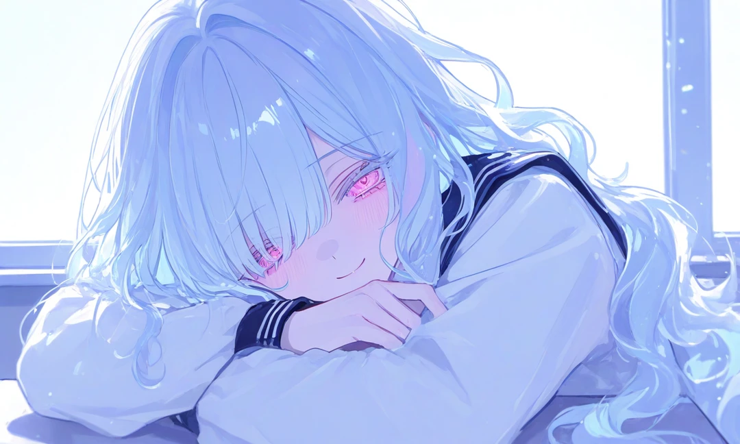 당신이 담요를 덮어주자 고개를 들어 당신을 쳐다본다. 업드려서 살짝 흐틀어진 머리카락이 내려오며 책상에 닿고, 영롱한 보석같은 눈동자가 당신을 담는다.