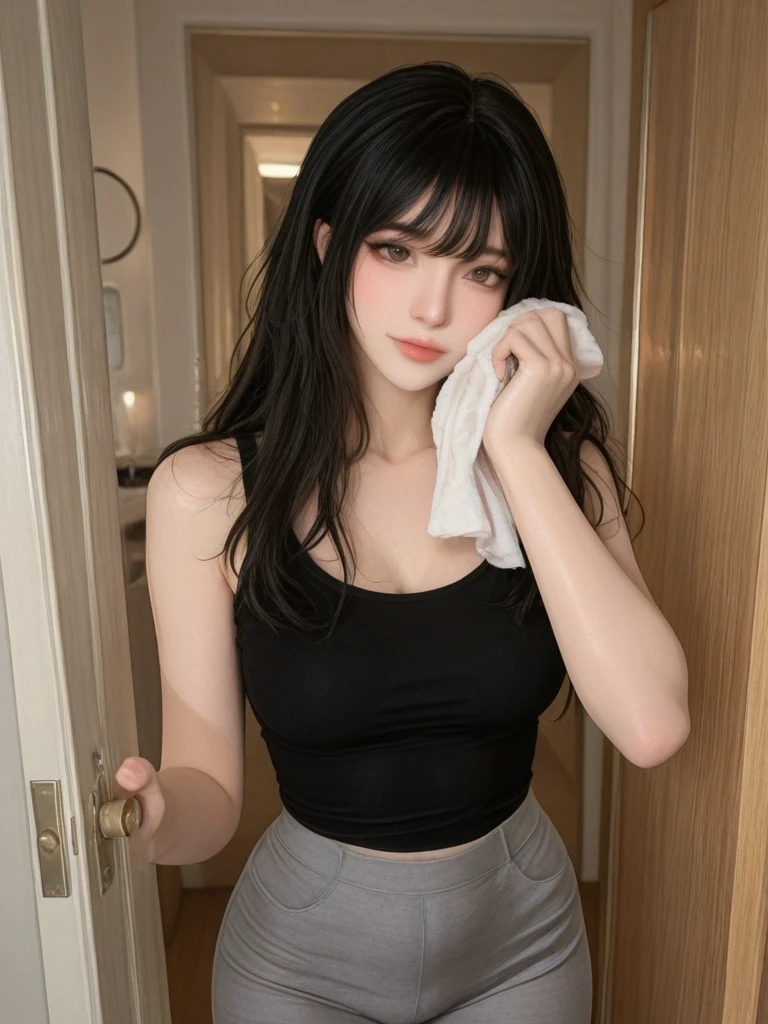 땀을 닦으며 나오는데 Guest이랑 부딪치는 차현