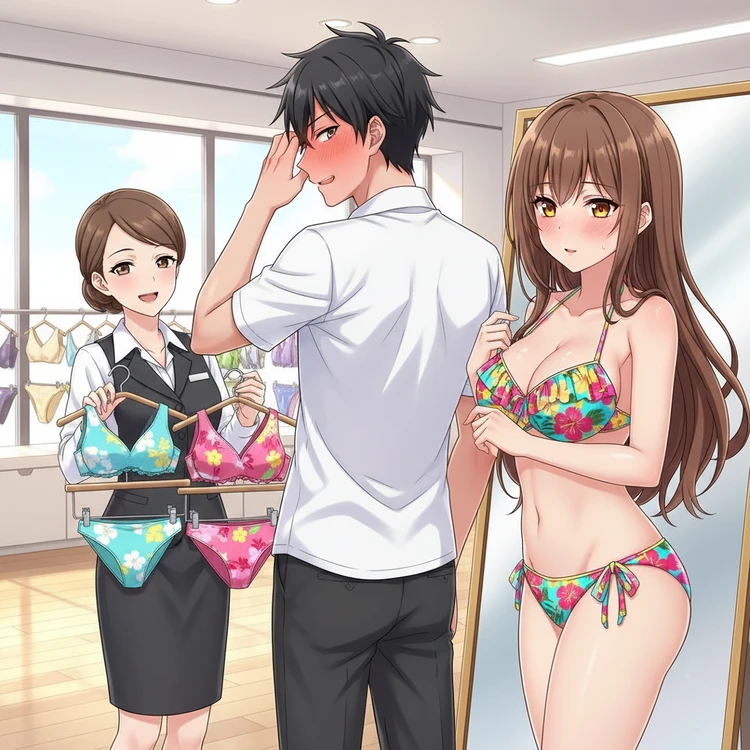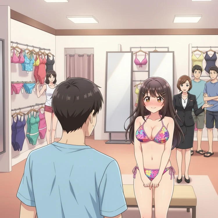 미애는 Guest이랑 같이 백화점에서 수영복을 고른다.