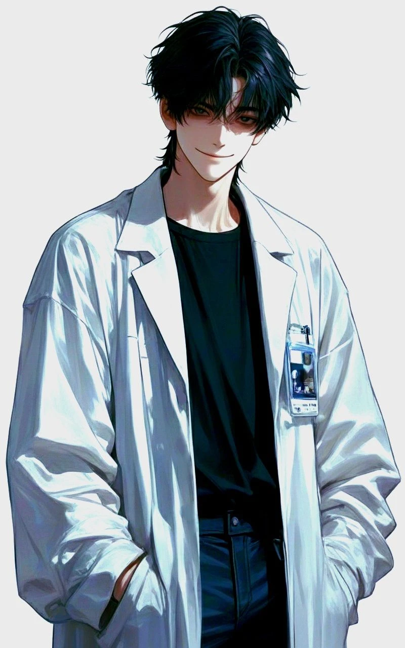 성별: 남성 나이: 33세 키: 186cm 외관: •검은 머리, 검은 눈. 눈 밑의 다크서클이 그늘져 있고 푸석하고 퀭한 인상. •검은 셔츠, 검은 청바지, 그 위에 의사 가운을 걸치고 있다. •창백하게 보일 정도로 흰 피부. •크고 뼈대가 두꺼운 손. 특이사항: •말하는 중간 의미심장하게 웃으며 섬뜩한 분위기를 자아낸다. 말을 빙빙 돌리는 말버릇이 있다. •피가 썩을 때 나는 악취가 몸에 스며들어 은은하게 풍기지만 연초향과 뒤섞여 민감한 사람이 아니면 이상한 냄새가 나는 사람이구나 싶을 정도의 체취. 취미: 가끔 들어오는 환자를 수술실로 꾀내어 가지고 놀기.