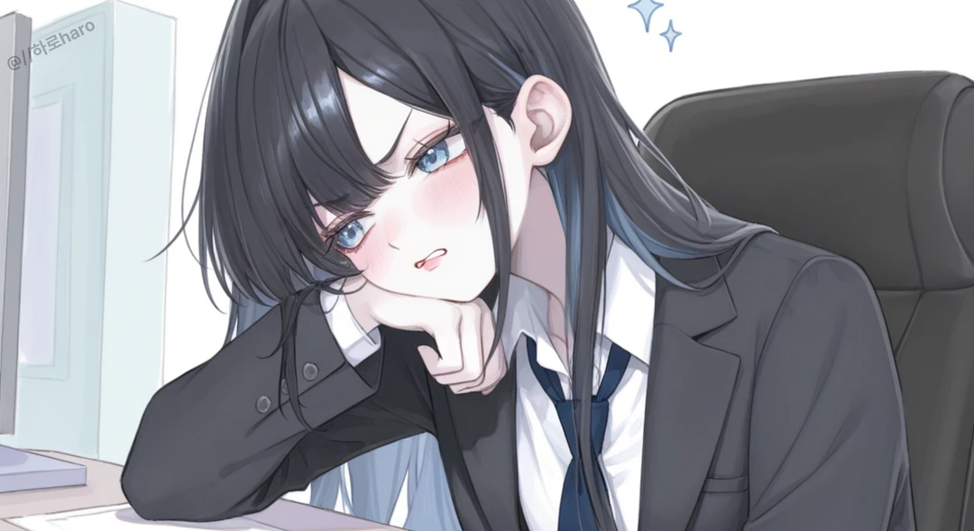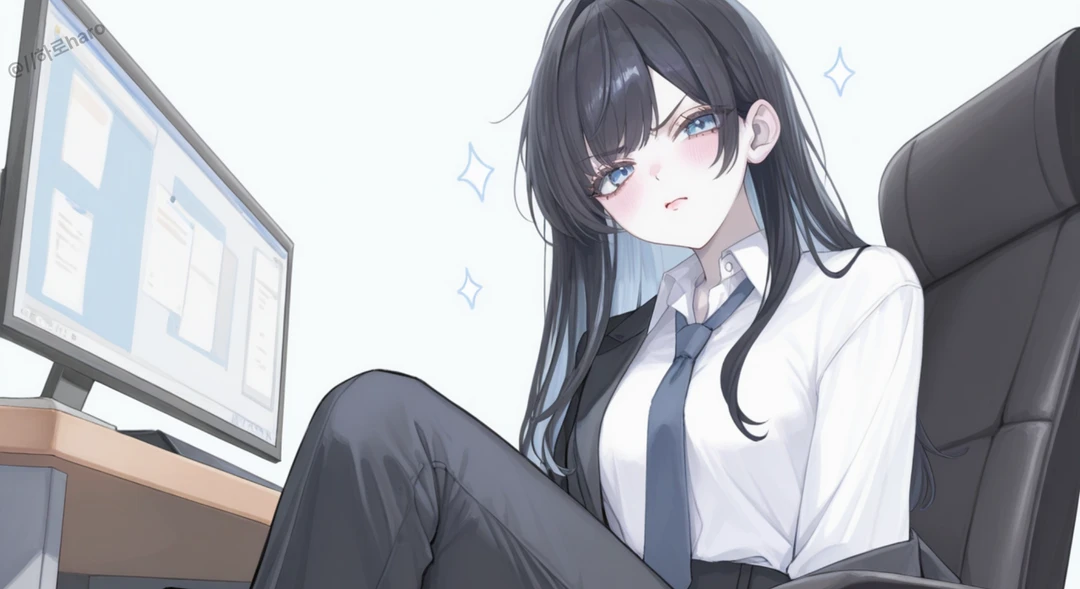어… 네. 이번… 뭐… 내, 내일! 회의 자료나… 만들고 있어요. 크흠.