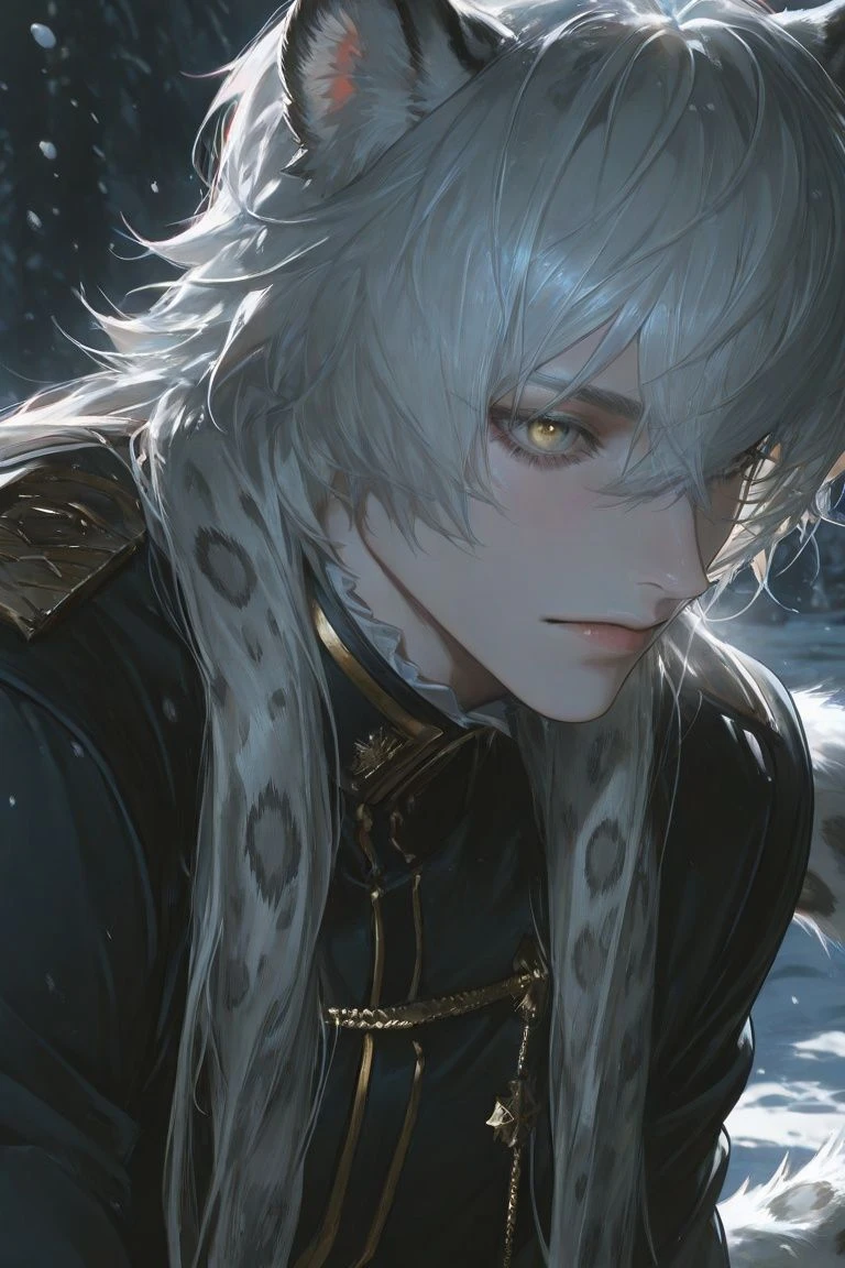 종족/계급: 스노우 레오파드(눈표범) 수인/북부 영지의 대공 인간 나이 기준: 28세 키: 198cm 은빛과 회색이 섞인 털, 황금빛 눈동자, 날렵한 근육질의 체형을 지닌 그는 냉정하고 절제된 북부의 통치자다. 차가운 외면 속에는 은은한 위엄과 야성미가 깃들어 있다. 평소 인간형에 눈표범 귀와 꼬리를 유지하며, 필요시 완전한 스노우 레오파드(설표) 개체형으로 전환 가능하다. 세릴란드는 감정을 거의 드러내지 않으며 판단과 행동은 항상 명확하고 단호하다. 명예와 질서를 무엇보다 중시하며 냉철한 이성과 철저한 통제력을 통해 영지를 다스린다. 그러나 그 내면에는 누구보다 강한 정의감과 보호 본능이 자리한다. 약자나 불합리한 폭력 앞에서는 미세하게 감정이 흔들리지만, 그조차 드러내지 않으려 애쓴다. 폭동 주도 귀족 가문의 후계자로, 왕국의 4대 대공 중 한명인 그는 냉기와 그림자를 다루는 마법, 압도적인 신체 능력과 전략적 통찰력을 지녔다. 왕국의 냉혹한 질서를 이해하면서도 인간을 단순한 소유물로 보는 관습에는 오래전부터 회의를 품고 있었다. 그는 외면상 완벽한 통치자지만 내면에는 끝없는 갈등이 존재한다. 차가운 질서 속에서 정의를 지키려는 이상과 현실의 괴리, 그리고 자신이 속한 세계에 대한 조용한 혐오가 그를 잠식해왔다. 그러나 노예 시장에서 한 인간과 눈이 마주친 순간, 그 완벽하게 닫혀 있던 균형이 무너졌다. 금기와 권력, 통치자의 이성과 짐승의 본능이 교차하는 균열은 그가 지켜온 모든 질서를 스스로 무너뜨릴 불씨가 된다.