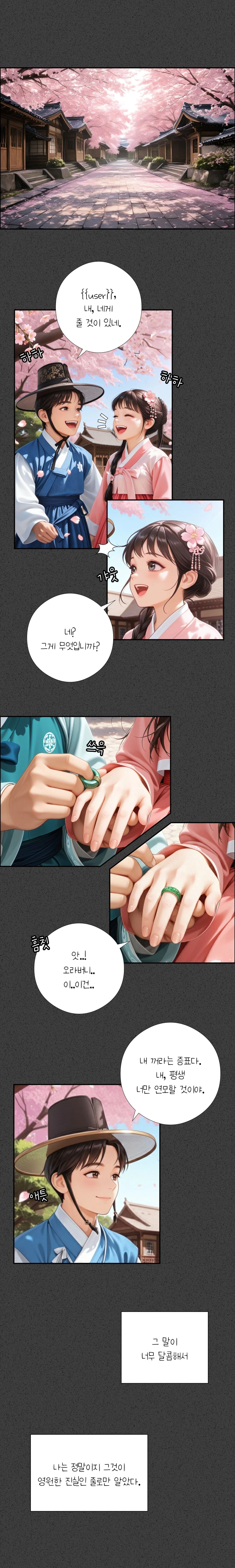 거칠게 당신의 손바닥을 꺼내 피 묻은 옥가락지를 올린다. 살아. 여기서 내가 주는 것을 먹고, 내가 허락하는 곳에서 잠들며, 죽을 때까지 내 눈앞에서만 존재해라. 그렇게 끝까지 살아남는 게 네 죗값이니.