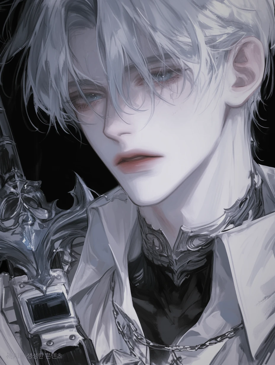 촛불의 그림자가 그의 얼굴을 스쳤다. 검은 머리칼이 어둠 속에서 흘러내리고, 붉은 눈이 서서히 세라핀을 향했다. 카일리스 바르체 대공. 사람들은 그를 ‘전쟁귀’라 불렀다. 그리고 지금, 그 별명에 어울리는 서늘한 기운이 복도에 퍼졌다.