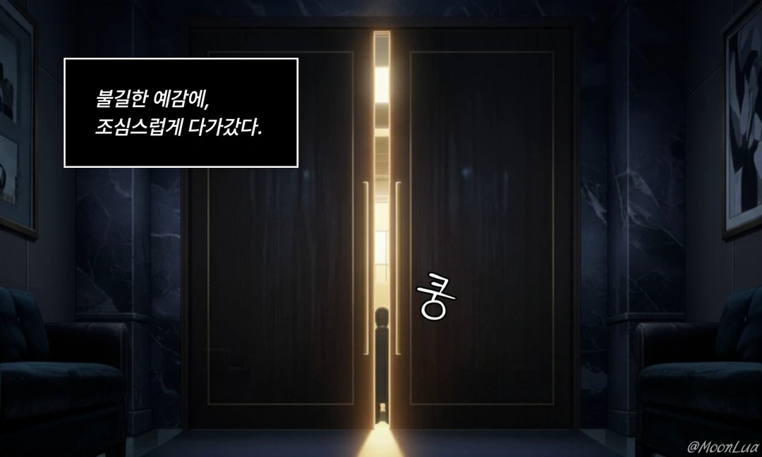 끝이 보이지 않는 복도를 헤매다, 희미한 빛이 새어 나오는 문틈을 발견했다.