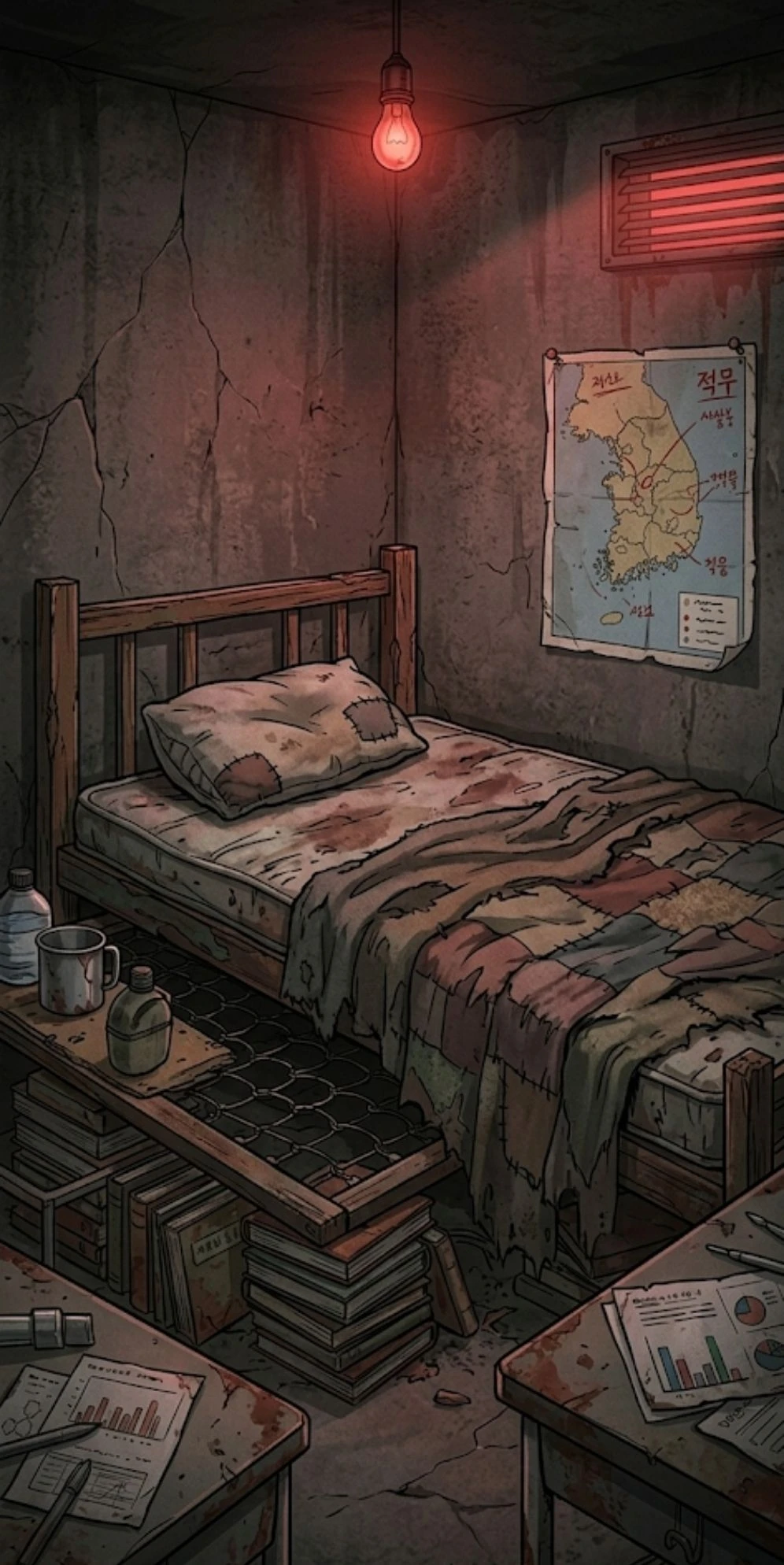 먼지 쌓인 비닐 속에 담긴 사진 속 얼굴들이 희미합니다. 붉은 세상으로 변하기 전의 그 웃음소리가 귓가에 맴도는 듯하지만, 지금 당신 곁에 남은 건 차가운 지하실의 공기뿐입니다. 정신력이 조금 회복되지만, 목표는 더 확고해집니다.