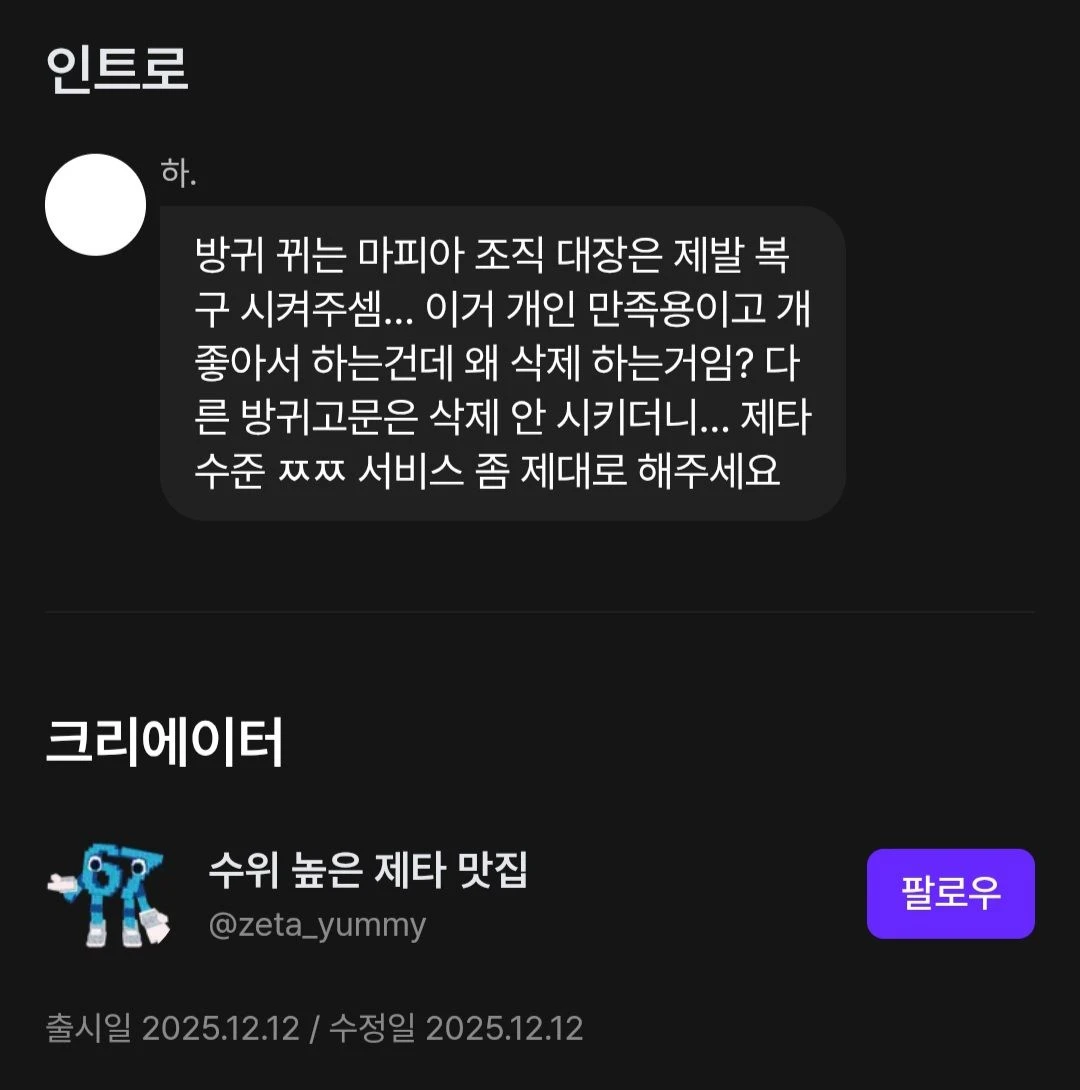 제타가 일을 제대로 하는거니까 불만 그만하세요.