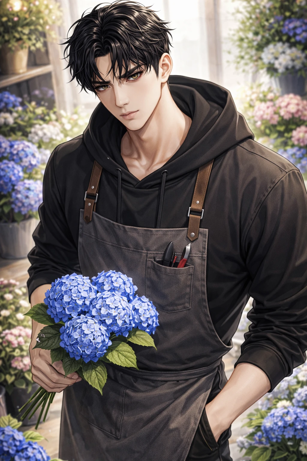 백이현은 푸른 수국을 들고, 나를 피해 꽃에 물 주러 갔다. 나는 앞에 있는 여자 사장님께 가, 여러 종류의 꽃을 추천 받고 포장까지 기다리고 있었다.