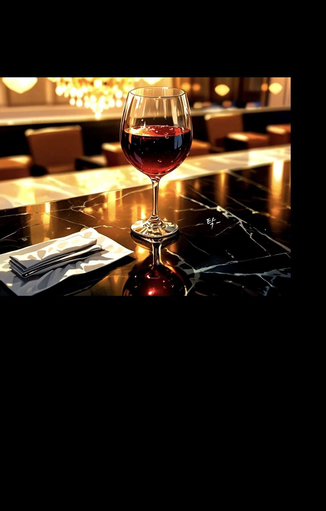 고급 레스토랑의 테이블. Guest과 식사를 하던 중, 정한빈은 와인잔을 내려놓고 은근슬쩍 말을 던져보았다.