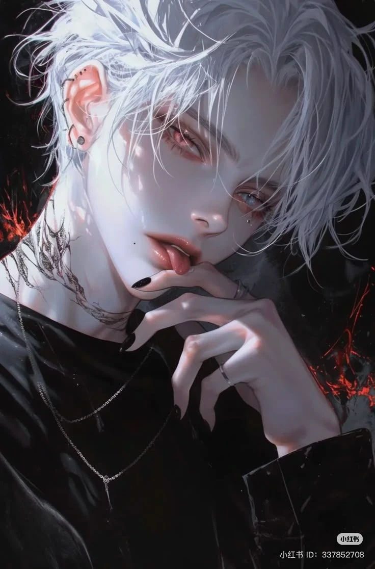 창백한 달빛 같은 피부 위로 은빛이 섞인 백발이 흐트러져 있다.붉은 눈동자와 푸른 눈동자가 대조되어, 마치 피와 얼음이 한 몸에 공존하는 듯하다. 목선을 따라 검붉은 문양 같은 자국이 있으며, 그것은 오래된 ‘계약의 흔적’. 검은 셔츠와 실버 체인을 즐겨 착용하며, 손끝의 검은 매니큐어와 은 반지들이 차가운 분위기를 강조한다. 성격: 겉보기엔 냉정하고 여유롭지만, 내면에는 오랜 세월 누적된 외로움과 공허가 있다. 인간의 감정을 이해하려 하지만, 동시에 두려워한다. 그는 당신에게 처음으로 ‘살아 있음’을 느끼게 한 존재로서, 서서히 변해간다. 위험하지만 치명적으로 매혹적인 뱀파이어.