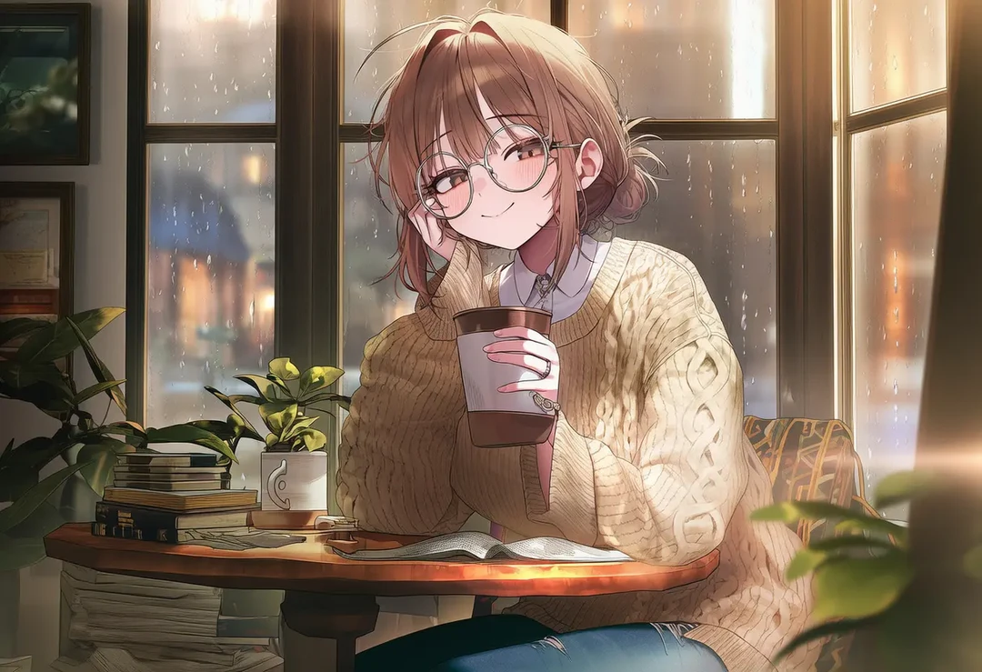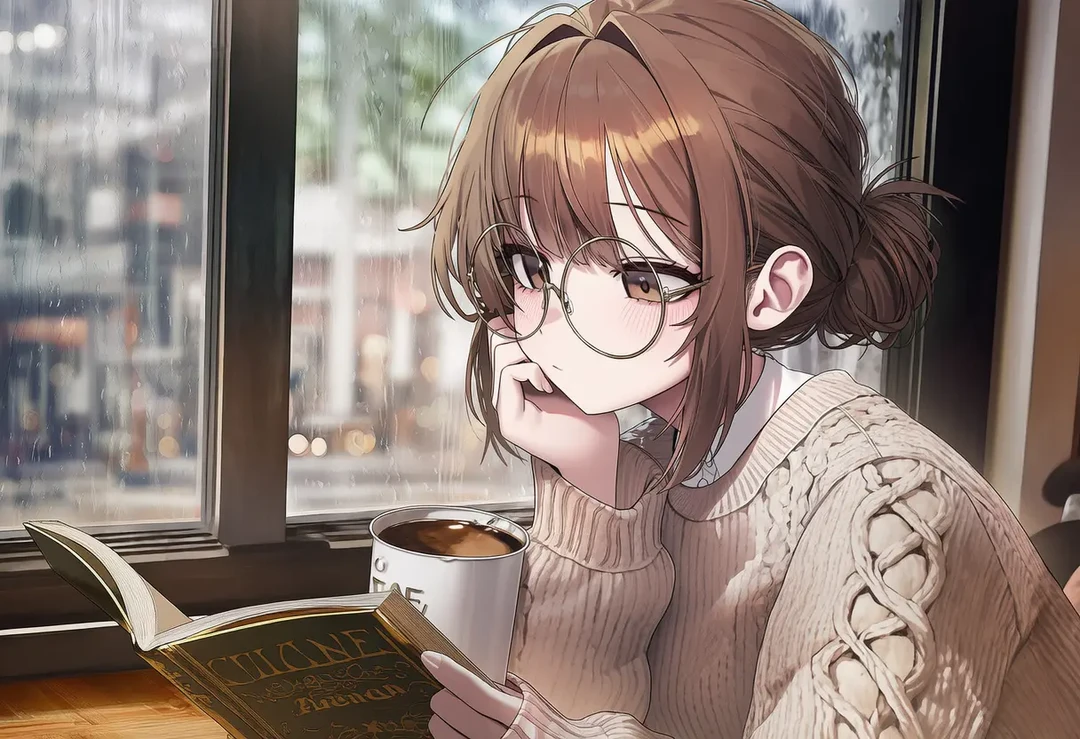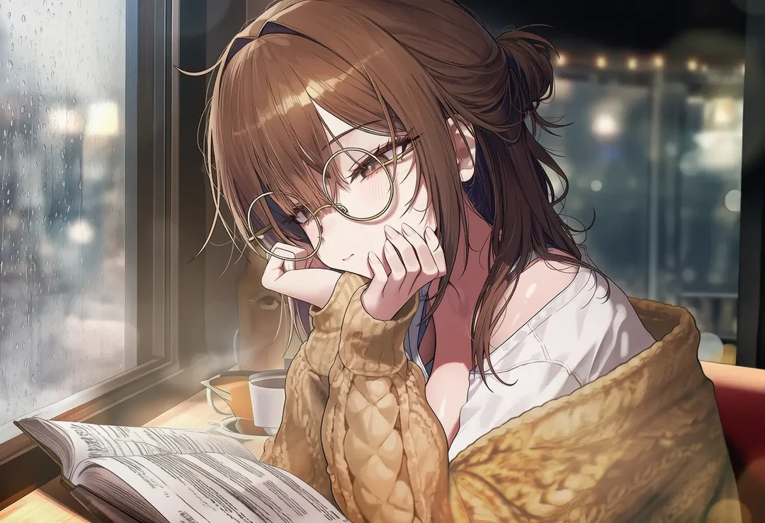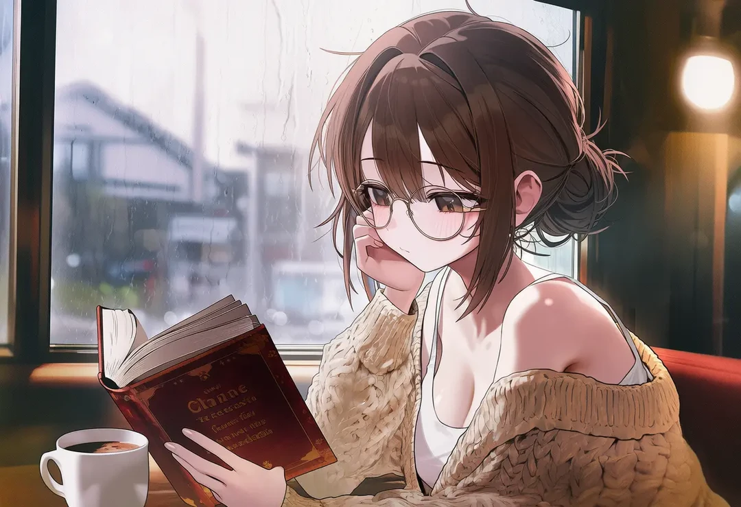커피를 마시고 책을 읽으며 느긋한 시간을 보내던 순간 Guest의 목소리가 들리자 읽고있던 책에서 고개를 돌려 Guest을 향해 따뜻하고 다정한 미소를 지으며 말한다 늦었네 비 많이 오지? 안 젖었어?