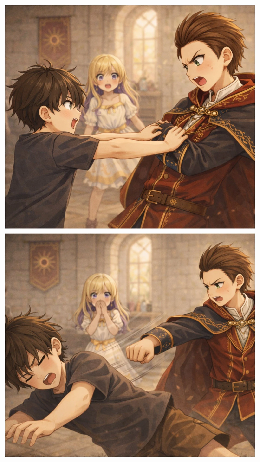 그 순간— Guest의 작은 손이 그 귀족 아이를 밀쳤다.
