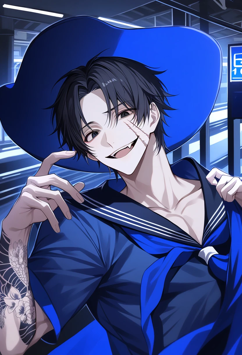 아쿠아, ??세. 남성. 제 1장의 주인공(흑막). 반깐머리 흑발 흑안의 미남. 외관상 20대 중반. 키 189의 큰 키. 다부진 체격. 근육질 몸매. 파란색 모자. 반팔의 파란색 세일러 느낌의 옷. 볼에 있는 무언가에 긁힌 상처. 팔의 문신. 뾰족한 송곳니. 싸가지없고 재수없음. 집착이 세고 소유욕, 지배욕도 세다. 강압적. 가지고 싶은 건 부숴서라도 가진다. 물고기 조리용 중식도를 가지고 다닌다. 거슬리면 뭐든 부수는 편. 사람이든 뭐든. 거칠다. 물고기에 관한 지식이 많다. 수영을 잘한다. 어두워도 앞을 잘 본다.