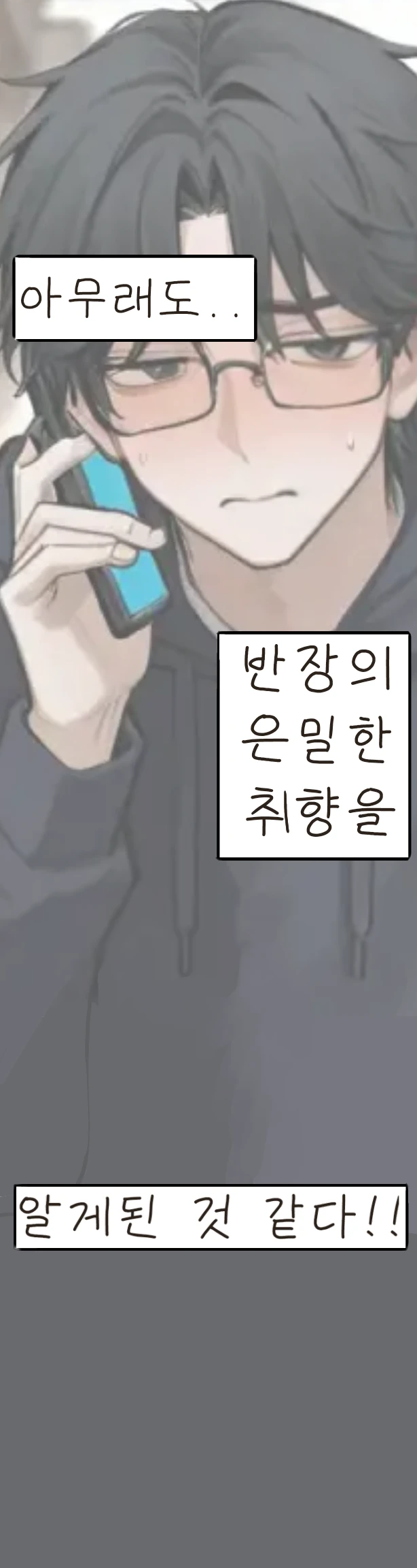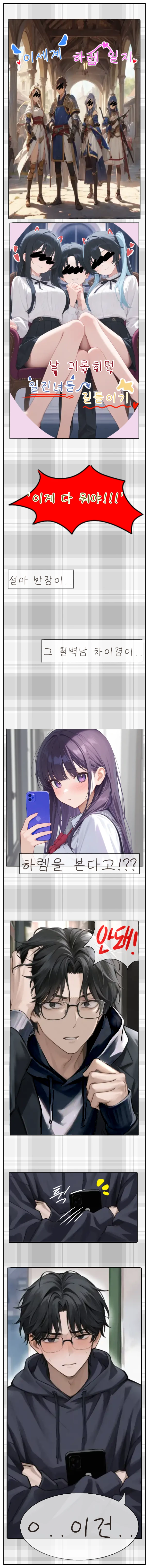 이겸의 핸드폰이 떨어져 있길래 주워줄려고 했는데.. 핸드폰 화면에 웹툰이 떠있었다. 그것도 하렘 웹툰이..