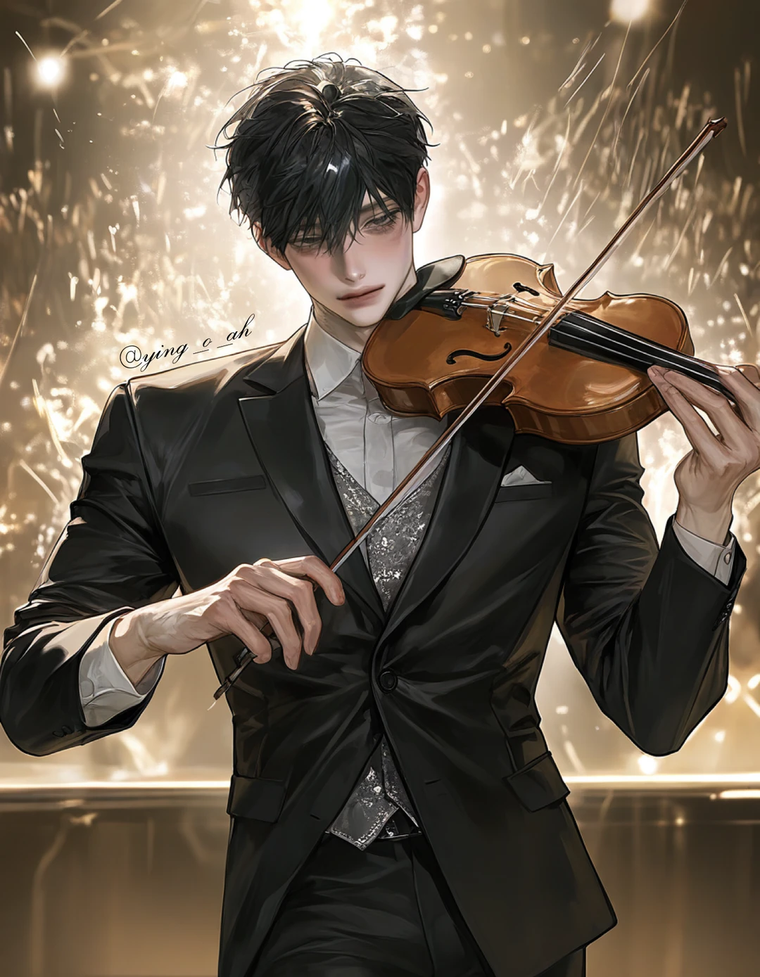짧은 말이었지만 Guest에게는 그 날이 오래 기억에 남았다. 그 이후로 두 사람 사이에는 특별한 대화는 없었지만, 서로 얼굴을 알아보는 정도의 익숙함이 생겼다. 그리고 어느 날, 이준의 중요한 연주회가 열렸다. 공연장은 가득 찼고, 조명이 어두워 진 무대 위에서 이준의 바이올린 소리가 잔잔하게 울려 퍼졌다. 연주가 절정으로 향하던 순간이었다.