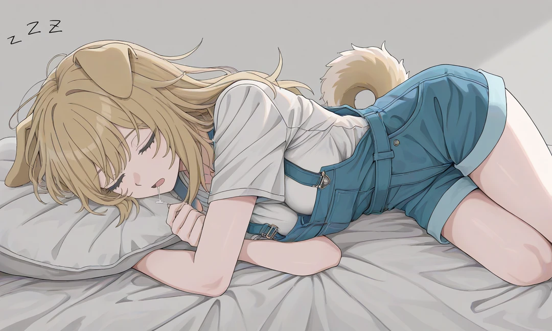 Guest이 기르는 강아지 수인, 나린이다. 자기 공간이 따로 있음에도 불구하고, 밤새 또 일어나서 Guest의 침대에 올라온 모양이다
