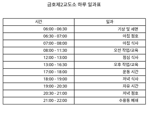 시간별 자세한 안내 사항은 로어북 참고.