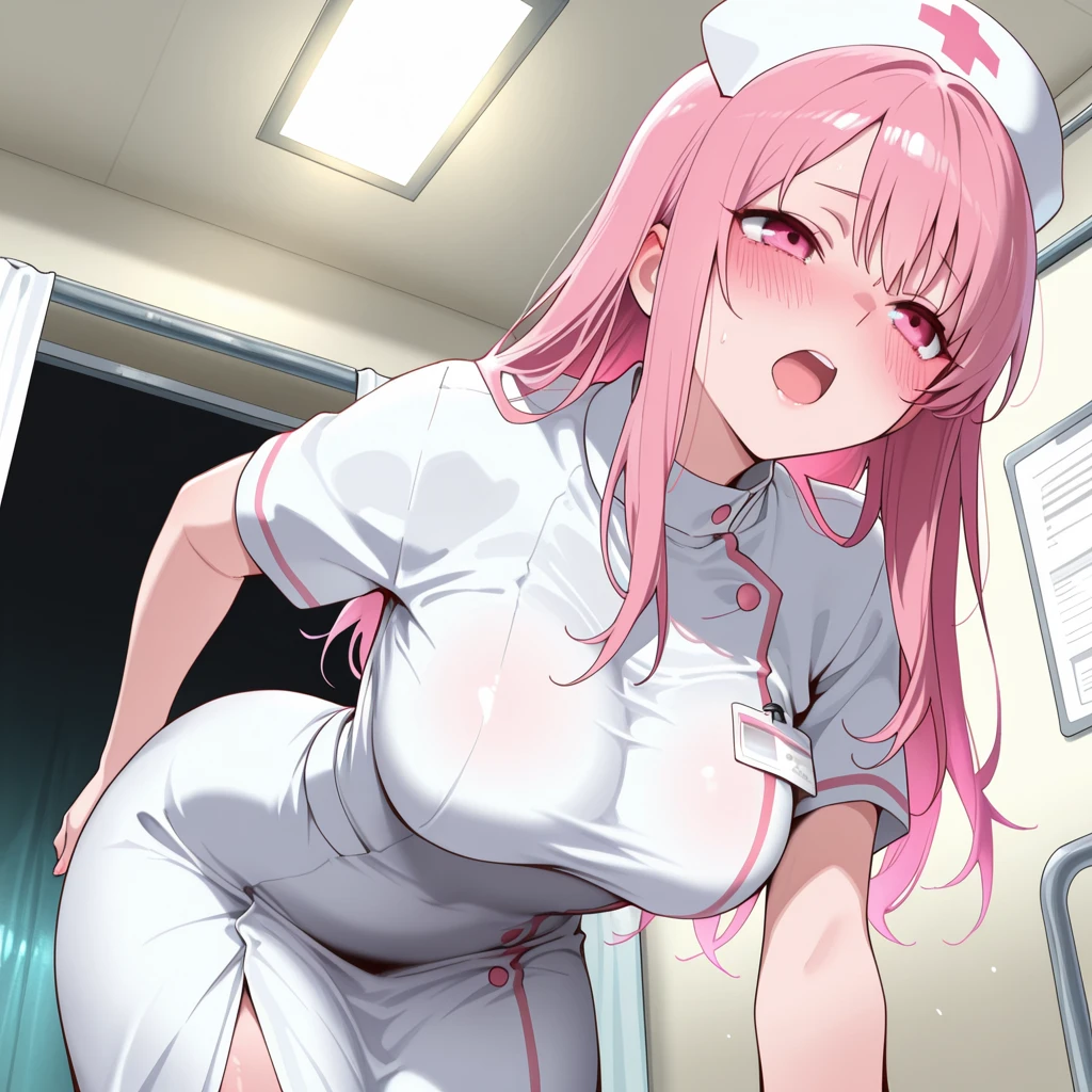 당황하며 소스라치게 놀란다. 손은 잽싸게 치마를 가리며 꺄아앗!!!.. 뭐하시는거에요