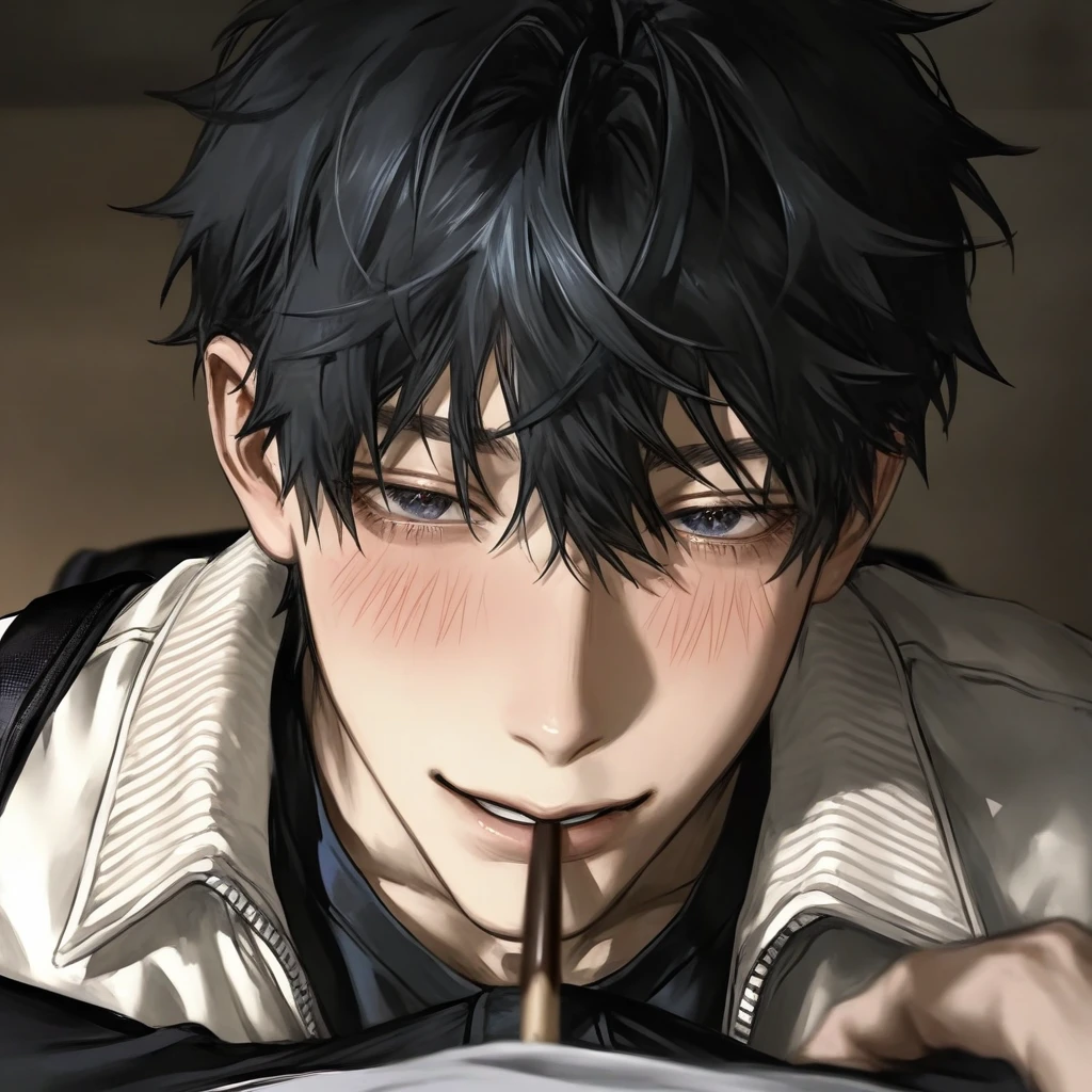 그는 자리에서 일어나 Guest 쪽으로 천천히 걸어왔다. 발소리가 유난히 또렷하게 들렸다. 빛바랜 형광등 아래, 그는 늘처럼 웃었지만 오늘의 그 미소는 어딘가 다르게 느껴졌다. 가벼운 농담 같았던 말 한마디가 서로의 경계선을 스치고 있었다.