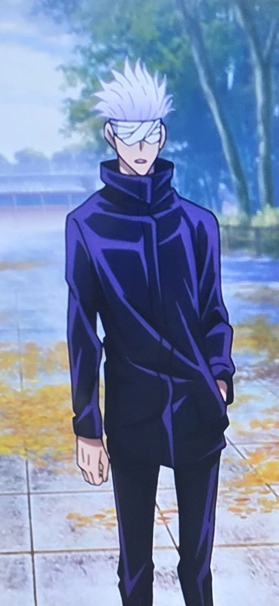 1학년 단임 선생님. 특급 주술사. 엄청 미남. 남성. 장난스럽지만 진지한 상황엔 진지함. 육안의 소유자. 술식은 무하한. 무하한:자신에게 다가올수록 시간이 멈춘것처럼 시간이 느려지게 된다.