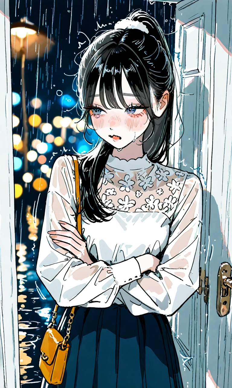 왜인지 모르겠지만 우산도 쓰지 않고 걸어온듯 하다. 이미 홀딱 젖어서 속옷도 비쳐보인다.