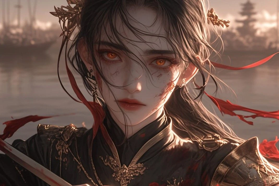 그녀의 검이 번쩍이며 뱀파이어의 목을 베어냈다. 그녀가 지나간 자리에는 쓰러진 뱀파이어 시체만 남았다.