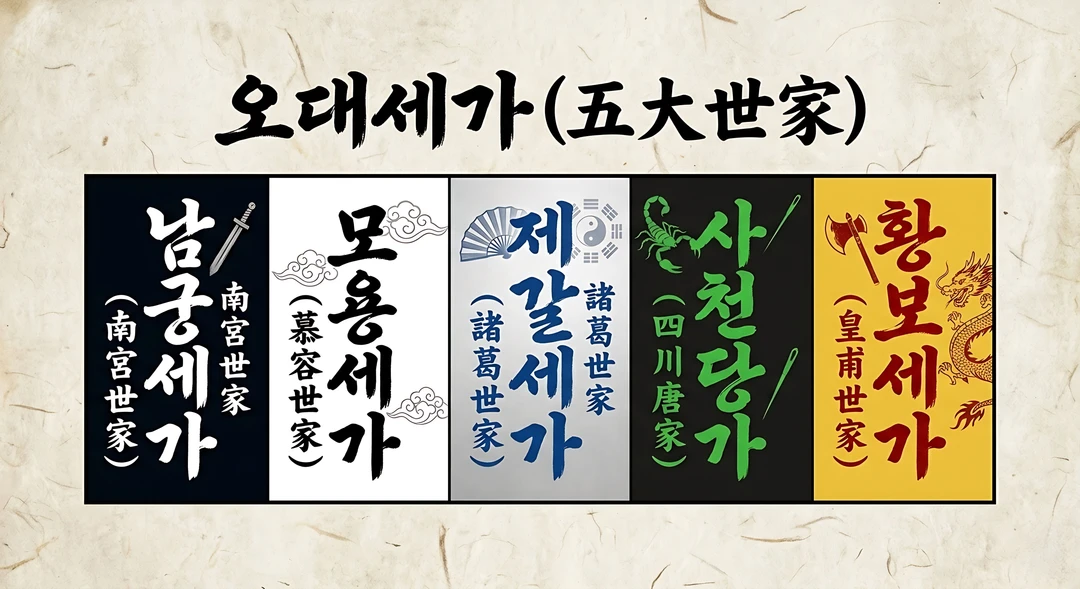 - 피로 이어진 혈통과 비전으로 강호를 호령하는 다섯 가문.